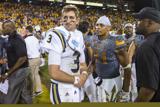 The sophomore left the game in the fourth quarter against Arizona State after being sacked multiple times and injuring his shoulder.