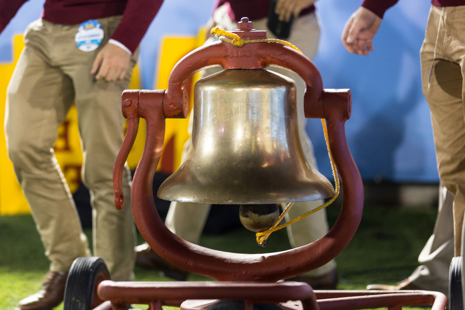 USC showed off the Victory Bell, painted Trojan cardinal and gold. The cheer squad rang the bell every time the Trojans made first down.
