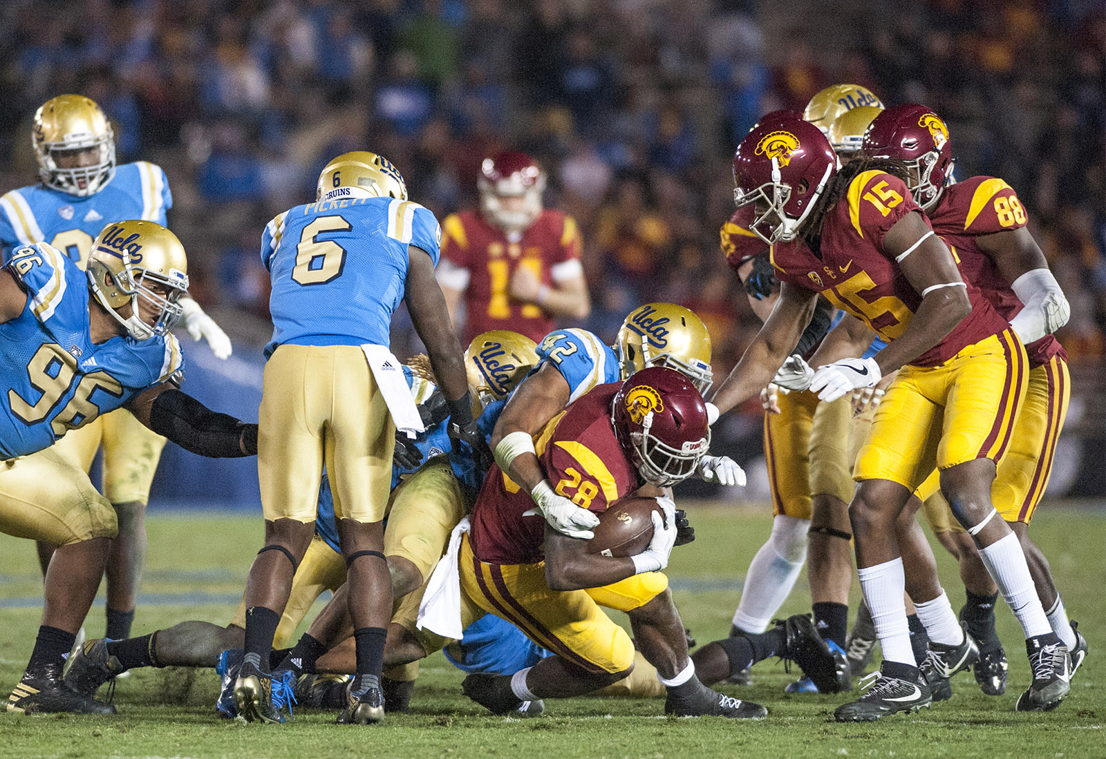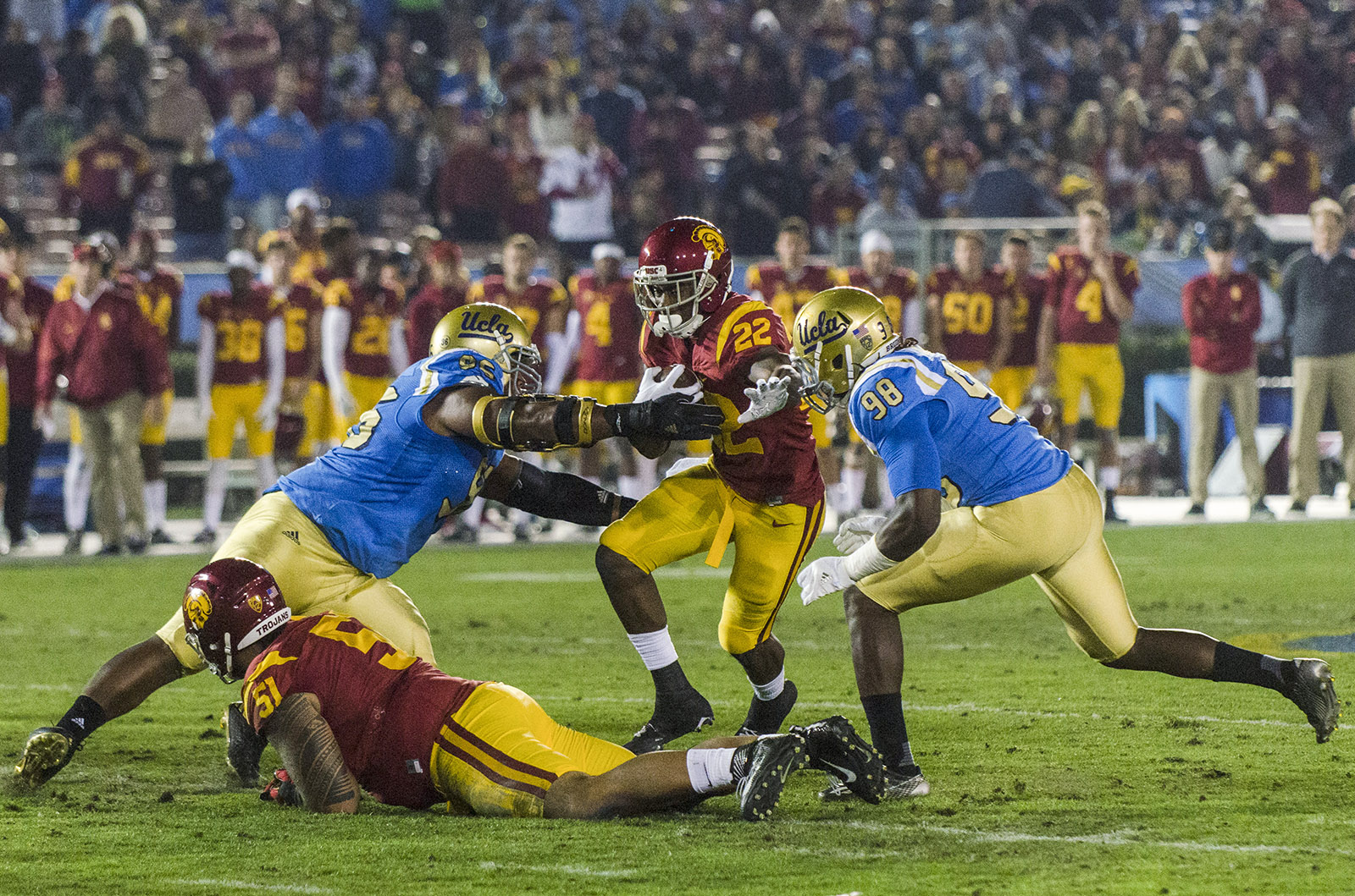 USC senior Justin Davis ran for 51 yards on 15 attempts against the UCLA defense.
