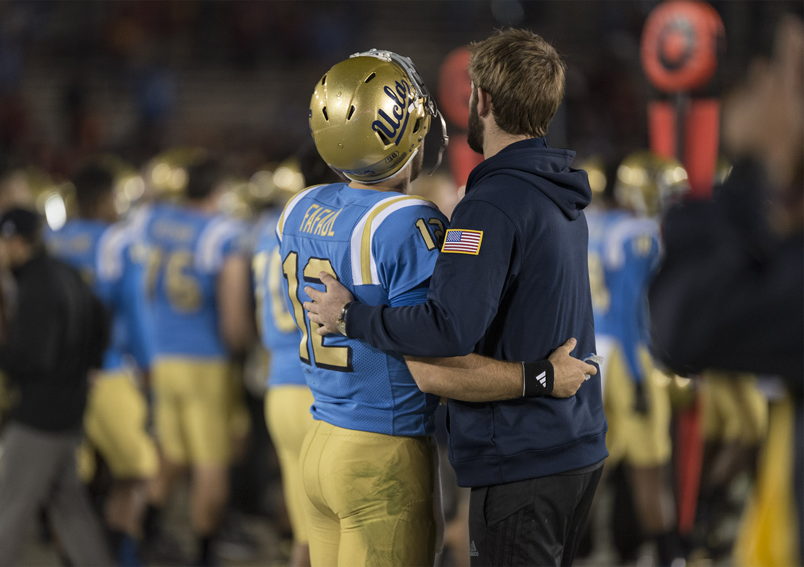 Former starting quarterback Josh Rosen consoled current quarterback Fafaul after the blowout loss against USC.