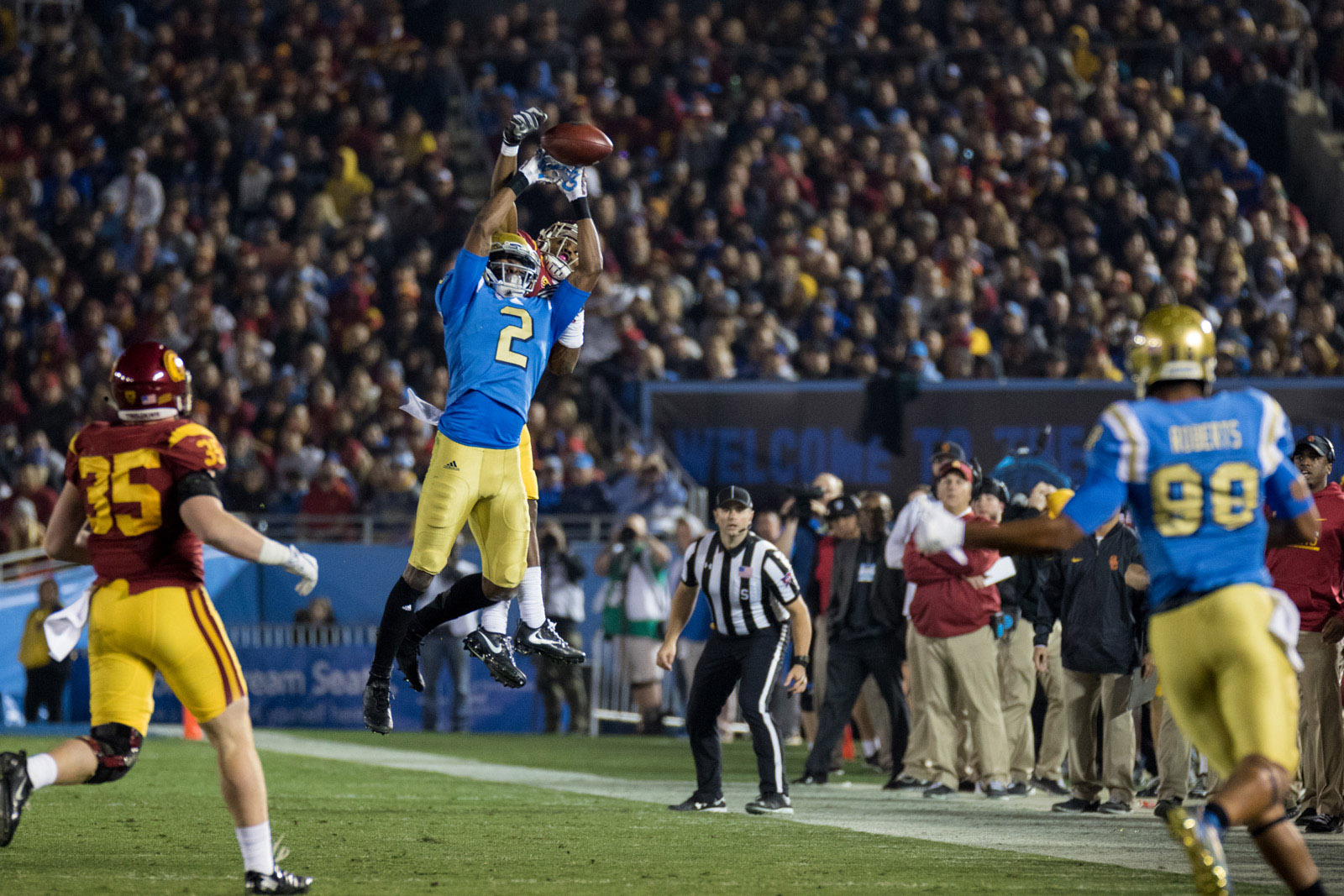 UCLA continued going play for play against their crosstown rivals, putting up another touchdown and interceptions from senior linebacker Jayon Brown and redshirt senior defensive back Fabian Moreau.