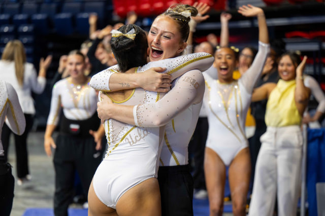 Senior Ciena Alipio – the Bruins’ best beamworker – fell off beam, took a step out of bounds during floor and was replaced in the bars lineup, not contributing to the team’s final score. But it didn’t matter – the Bruins’ deep roster saved the day, putting up high scores even without one of their most consistent athletes.